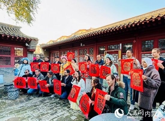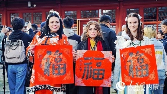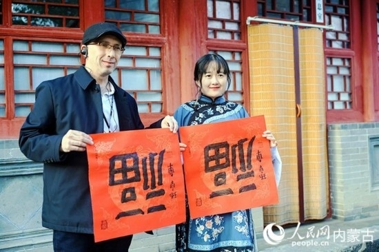 人民網(wǎng)呼和浩特10月23日電 (張聿修、孟佳澍、張雪冬、實(shí)習(xí)生朱昱晗)?!暗埂绷???!暗健绷耍[弄著手中的福字,了解到關(guān)于福字的寓意,塔吉克斯坦記者烏斯蒙·阿卜杜恰洪洛夫露出驚訝的表情,感嘆中國語言蘊(yùn)含的智慧。