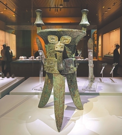 殷墟位于河南安陽市西北郊,是中國(guó)第一個(gè)有文獻(xiàn)記載并經(jīng)甲骨文及考古發(fā)掘所證實(shí)的商代晚期都城遺址,也是世界青銅文明的重要代表。殷墟博物館與殷墟宗廟宮殿區(qū)隔河相望,是全景式展現(xiàn)商文明的國(guó)家重大考古專題博物館。圖為殷墟博物館里展出的殷墟婦好墓出土的銅斝。人民網(wǎng)俄文專家 葉列娜·達(dá)維多娃攝 殷墟博物館是一座歷史文化的寶庫(kù)。在這里,我近距離地觀察一件件青銅器,仿佛看到其上閃爍著的中國(guó)古人智慧的火花;我端詳一片片的甲骨,試圖解讀那些古老的文字,仿佛在與中國(guó)古人跨越時(shí)空對(duì)話。在這里,我看到了考古學(xué)家如何不遺余力地保護(hù)歷史,也觀察到年輕的甲骨文愛好者們不斷用新鮮創(chuàng)意為文物保護(hù)注入新的生命力,這份傳承讓我深受觸動(dòng)。