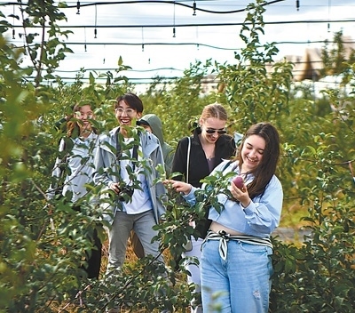 采礦不見(jiàn)礦,黃土披綠裝。礦山復(fù)墾區(qū)的千畝林果示范園里,一片郁郁蔥蔥的果園映入眼簾,蘋(píng)果、李子、梨、杏等果樹(shù)枝葉繁茂,果實(shí)累累。品嘗著甘甜的果實(shí),北京石油化工學(xué)院烏茲別克斯坦留學(xué)生阿扎馬特豎起了大拇指,并用標(biāo)準(zhǔn)的中文稱贊道:“滿分!”
