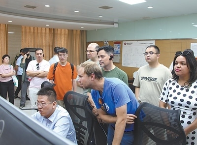 國(guó)際青年代表在玉門(mén)風(fēng)電場(chǎng)中控室參觀。圖為本報(bào)記者趙帥杰攝