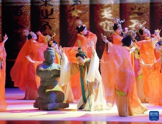 11月6日,演職人員在表演民族舞劇《孔子》片段。