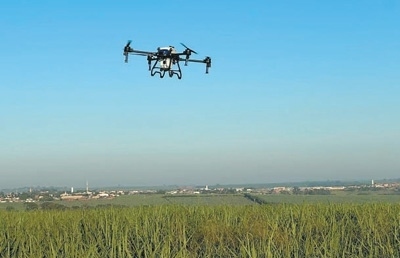 這里是圣保羅州最大的甘蔗合作社之一。今年,這家合作社的田間管理方式與往年大不相同——一架無人機(jī)緩緩飛行到甘蔗地上方,進(jìn)行農(nóng)藥噴灑作業(yè)。
