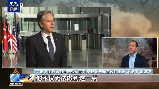 卡塔爾全球事務(wù)中東委員會外交政策與安全項目主任 阿德爾·加法爾:過去一年多布林肯已經(jīng)去了中東至少11次,和中東國家領(lǐng)導(dǎo)人會面,他試圖推動以色列結(jié)束戰(zhàn)爭,但到目前為止,他不僅無法做到這一點(diǎn),而且美國還在外交政策上偏袒以色列,不斷提供武器和資金支持。