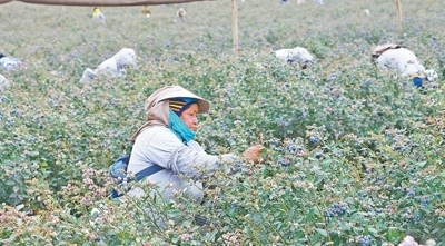 秘魯特魯希略市一家農(nóng)場內,工人們在采摘藍莓。本報記者 顏 歡攝