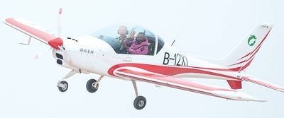 1月18日,在湖南省常德市柳葉湖龍翔低空飛行營地,游客乘坐固定翼飛機體驗飛行。