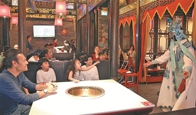 潘國余說,迪拜小龍坎火鍋店的位置在華人聚居區(qū),但現(xiàn)在40%的客人來自世界各地。這說明只要把握好品質(zhì),中國餐飲品牌“走出去”有著巨大空間?!拔覀儼l(fā)現(xiàn),很多國際客人來這里,一是因?yàn)槌曰疱伳茏约赫瓶乜谖杜c火候,有儀式感,二是能更多體驗(yàn)中國文化?!睘榇?,小龍坎火鍋店特意安排了川劇變臉、甩面秀、古箏彈奏等表演(見圖③,本報(bào)記者管克江攝),還提供傳統(tǒng)服飾供客人試穿、拍照?!盎疱伒甑难b修是古色古香的川西風(fēng)格,包廂名字也具有蜀地文化特征,如青梅煮酒、三顧茅廬、桃園結(jié)義等。每當(dāng)有外國朋友問起包廂名的含義,我們都會(huì)仔細(xì)解釋其歷史典故,做好美食的同時(shí)講好中國故事。”