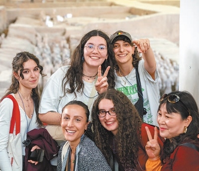 意大利青年在秦始皇兵馬俑博物館內合影留念。