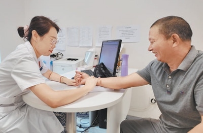 在柬埔寨考斯瑪中柬友誼醫(yī)院中醫(yī)診室,中國(guó)醫(yī)生為柬埔寨患者診斷病情。