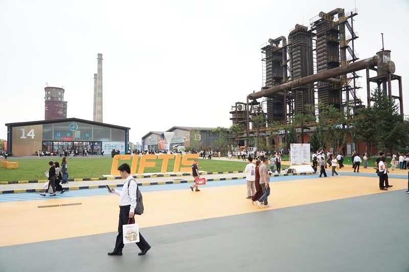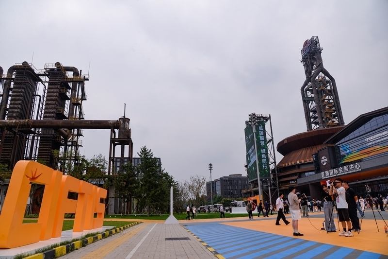 9月10日,在首鋼園四高爐,參會人員進出會議區(qū)。
