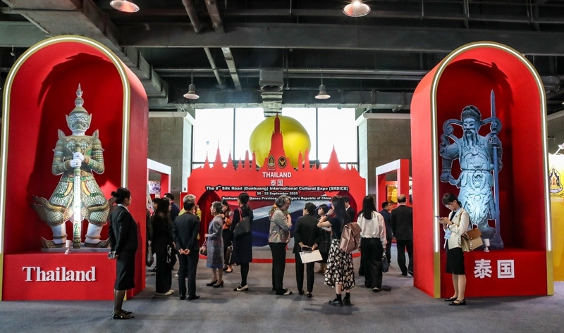 9月21日,在第八屆絲綢之路(敦煌)國際文化博覽會(huì)上,與會(huì)嘉賓參觀主賓國泰國展廳。