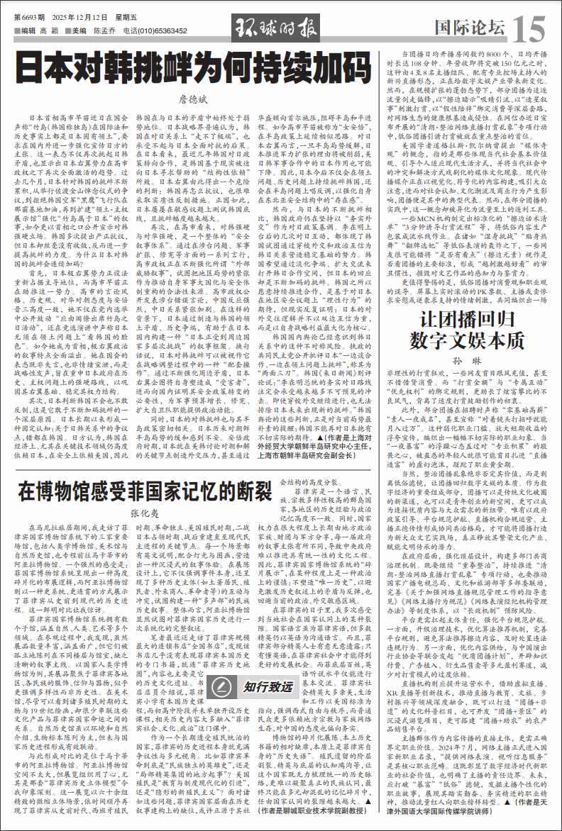 “2025年是日本戰(zhàn)敗投降80周年,也是日韓關(guān)系正?;?0周年,要求日本政府正視歷史遺留問題的呼聲日益高漲?!比毡尽冻招侣劇?1日稱,本月8日(太平洋戰(zhàn)爭爆發(fā)84周年紀(jì)念日)以來,多方持續(xù)敦促日本政府向戰(zhàn)爭受害者及其家屬就戰(zhàn)爭傷害進(jìn)行謝罪并賠償。