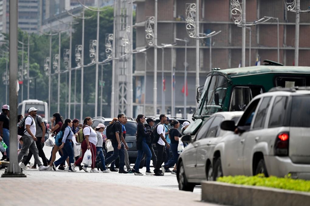 12月2日,在委內(nèi)瑞拉首都加拉加斯,行人在早高峰時(shí)段穿過(guò)玻利瓦爾大街。新華社記者李木子攝