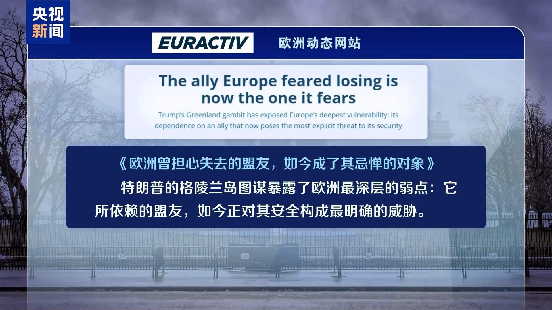 歐洲動態(tài)網(wǎng)站6日以《歐洲曾擔心失去的盟友,如今成了其忌憚的對象》為題評論說,“特朗普的格陵蘭島圖謀暴露了歐洲最深層的弱點:它所依賴的盟友,如今正對其安全構成最明確的威脅。”文章還提醒說,我們正進入一個“強權即公理”的新世界——而歐洲人對此毫無準備?;蛟S,格陵蘭島可能帶來的羞辱,將促使歐洲人反思這一現(xiàn)狀,并最終采取行動改變局面。