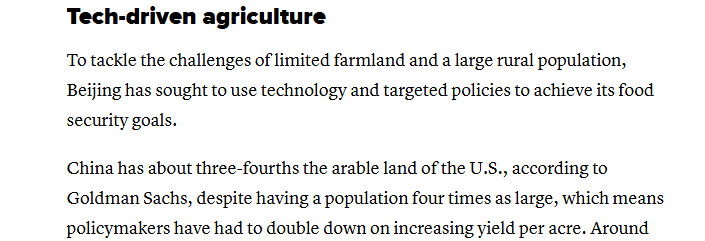 報(bào)道特別關(guān)注到,為應(yīng)對(duì)有限的耕地資源和龐大的農(nóng)村人口所帶來的挑戰(zhàn),中國試圖借助科技手段和有針對(duì)性的政策來實(shí)現(xiàn)糧食安全目標(biāo)。