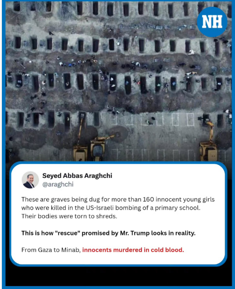 據(jù)報(bào)道,阿拉格齊在貼文中表示,“這些墳?zāi)?,是為了埋葬在美以?lián)合轟炸小學(xué)事件中遇難的160多名無辜女孩而挖的。她們的遺體支離破碎。”