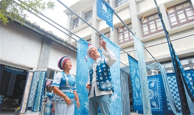 英國籍視頻博主斯圖爾特·維金在云南大理體驗白族扎染技藝。