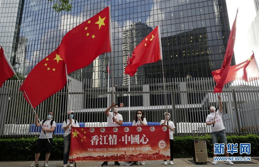 6月4日,在香港金鐘,香港市民慶祝香港特區(qū)立法會三讀通過《國歌條例草案》。當日下午,香港特區(qū)立法會三讀通過《國歌條例草案》,《國歌條例》將于6月12日正式刊憲實施。新華社記者王申攝