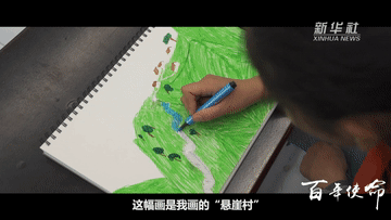 在四川大涼山,12歲的額其古伍畫下“懸崖村”之變。從藤梯、鋼梯到樓梯,人民對美好生活的向往,就是中國共產(chǎn)黨的奮斗目標(biāo)。