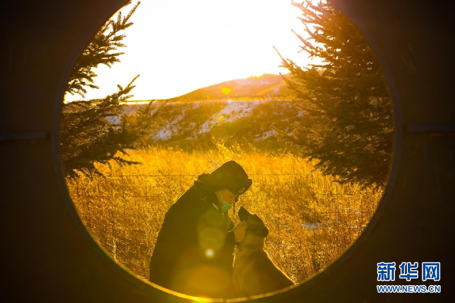 孫慧敏是內(nèi)蒙古出入境邊防檢查總站興安邊境管理支隊(duì)三岔邊境檢查站的警犬訓(xùn)導(dǎo)員。他和警犬“戰(zhàn)友們”默默地維護(hù)邊境地區(qū)安全穩(wěn)定。新華網(wǎng)發(fā)(包青松攝)
