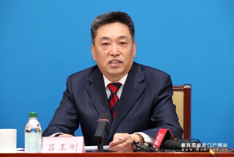 教育部基礎(chǔ)教育司司長呂玉剛介紹國家中小學(xué)智慧教育平臺建設(shè)與應(yīng)用有關(guān)工作情況。(中國教育報記者 張勁松/攝)