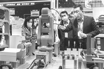 11月20日,工作人員向參觀者介紹5G智能工廠生產(chǎn)場景。當(dāng)日,2022中國5G+工業(yè)互聯(lián)網(wǎng)大會(huì)在武漢開幕。大會(huì)以“數(shù)融萬物,智創(chuàng)未來”為主題,期間將舉辦20場分論壇和多場特色活動(dòng),涉及應(yīng)用、技術(shù)、網(wǎng)絡(luò)、平臺(tái)、安全、產(chǎn)業(yè)等多個(gè)層面,同時(shí)舉辦“2022中國5G+工業(yè)互聯(lián)網(wǎng)”成果展,展示最新發(fā)展成果。新華社記者程敏攝