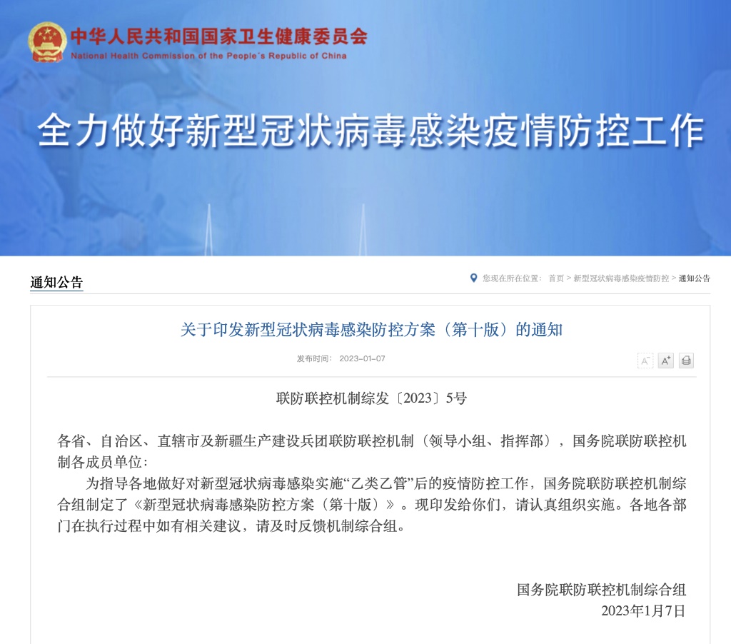新華社北京1月7日電 國務(wù)院聯(lián)防聯(lián)控機(jī)制綜合組1月7日印發(fā)《新型冠狀病毒感染防控方案(第十版)》。新版防控方案倡導(dǎo)疫苗接種和個人防護(hù),調(diào)整了傳染源管理方式和檢測策略,優(yōu)化了重點(diǎn)環(huán)節(jié)防控,并明確在疫情流行期間采取緊急防控措施。