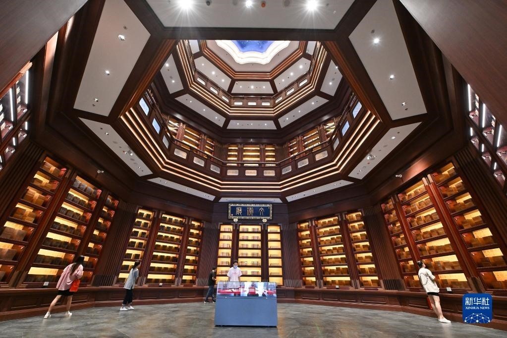 觀眾在位于北京的中國國家版本館中央總館文瀚廳內(nèi)參觀(2022年7月30日攝)。新華社記者 李鑫 攝