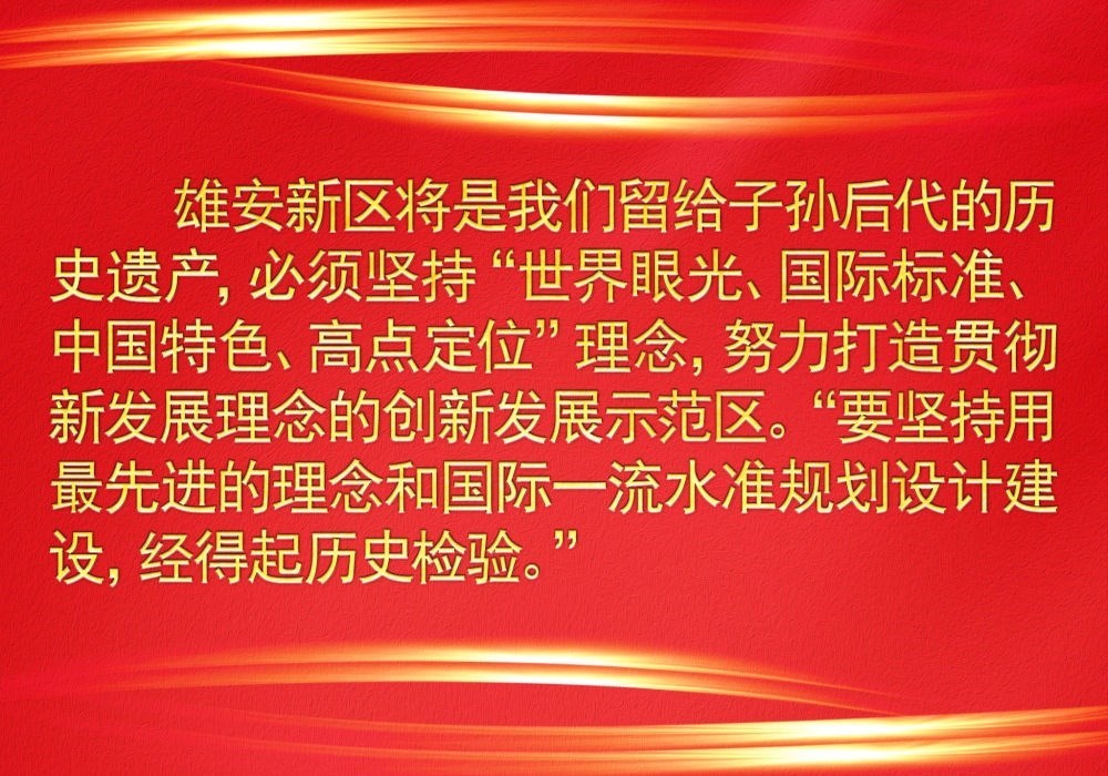 習(xí)近平總書記高瞻遠(yuǎn)矚謀劃推動雄安新區(qū)規(guī)劃建設(shè),他強(qiáng)調(diào),要貫徹高質(zhì)量發(fā)展要求,創(chuàng)造“雄安質(zhì)量”,在推動高質(zhì)量發(fā)展方面成為全國的一個樣板。