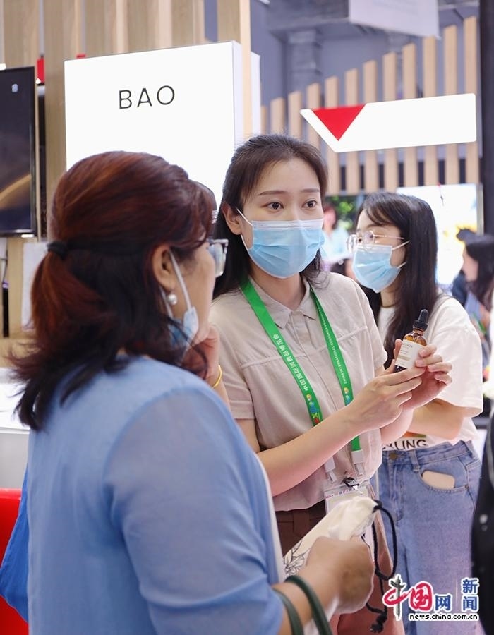 4月11日,工作人員為觀眾介紹護膚產品。中國網記者 吳亮 攝