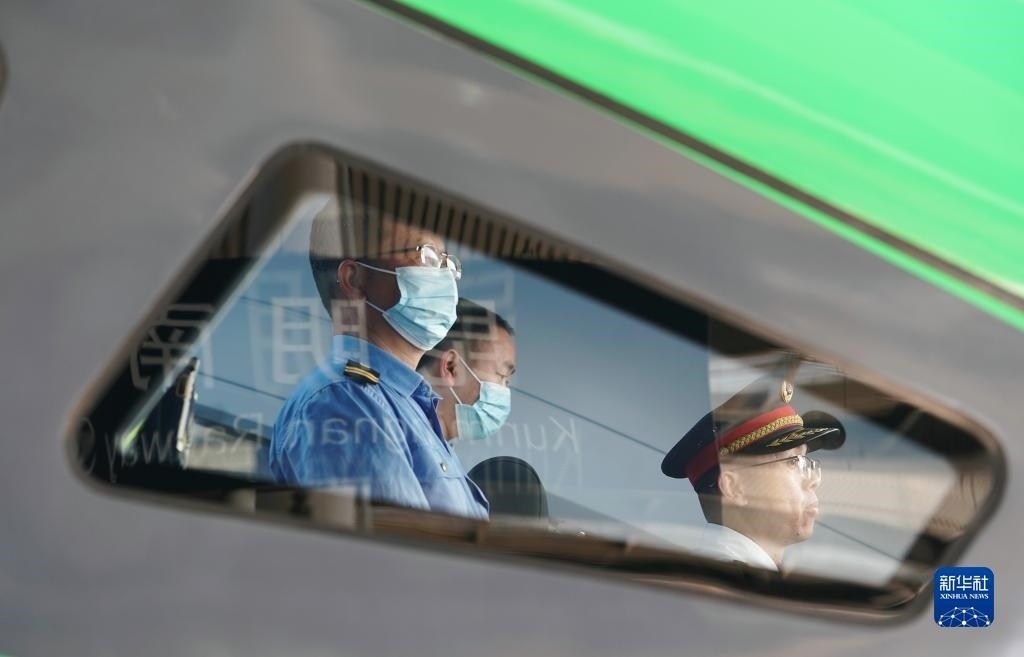 當(dāng)日,中老鐵路開行國際旅客列車,昆明至萬象間可實現(xiàn)乘火車當(dāng)日通達(dá)。新華社記者 邢廣利 攝
