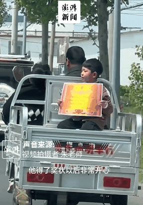 江蘇連云港一小男孩放學(xué)一路舉著獎(jiǎng)狀的視頻走紅,老師:一年級學(xué)生,可能是怕獎(jiǎng)狀太大,放進(jìn)書包會被折,一路從校門口舉回了家。