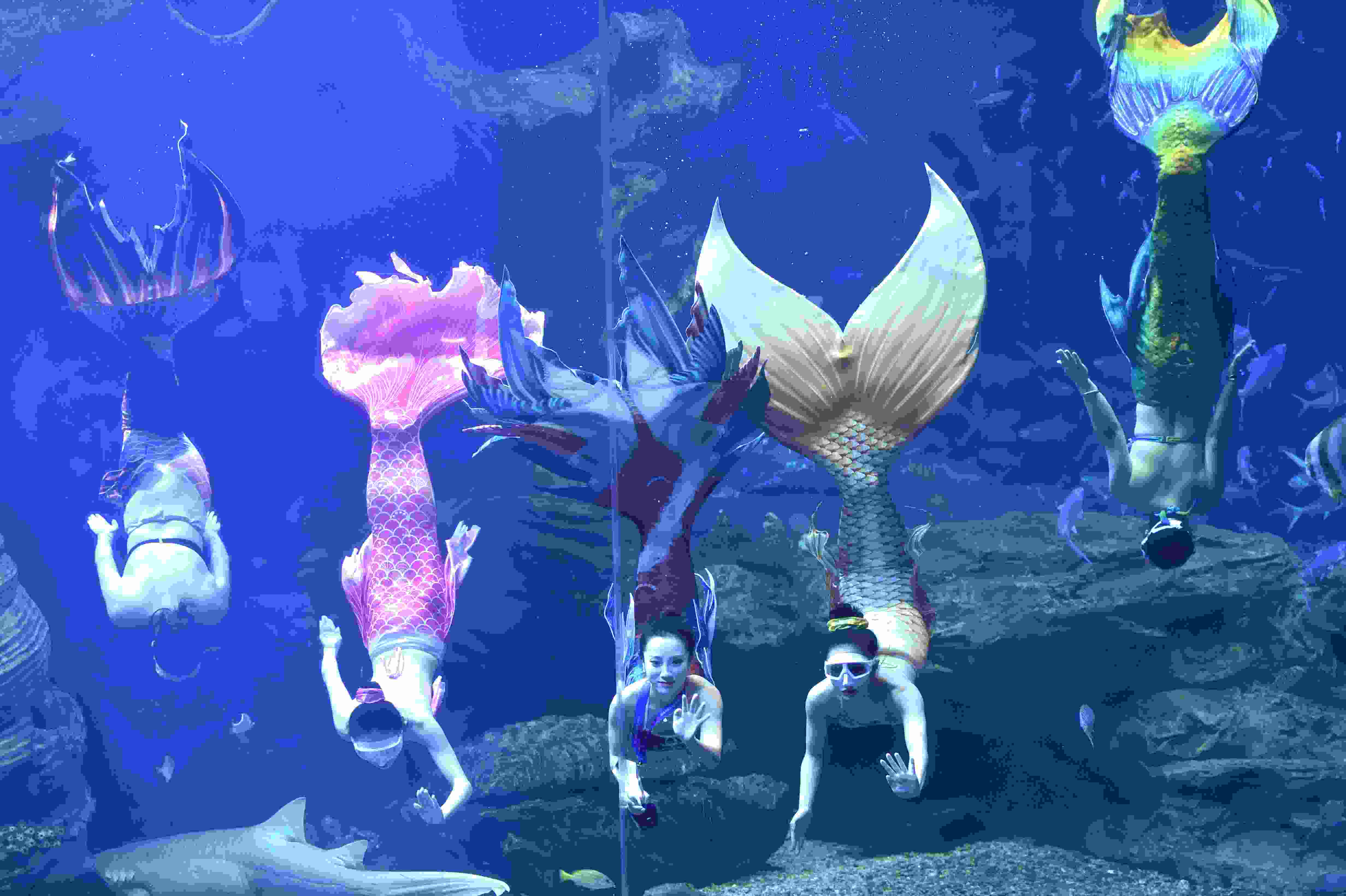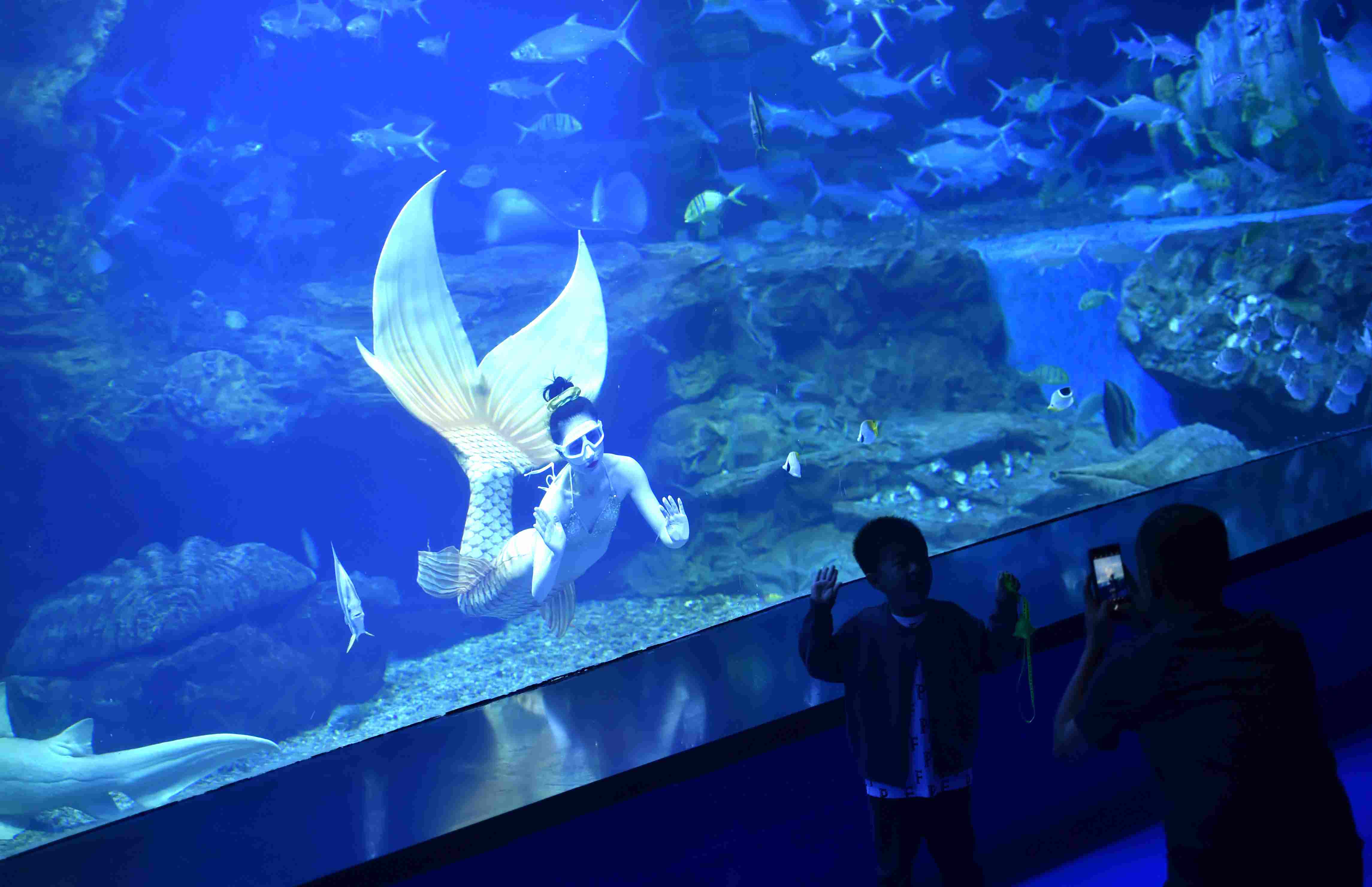 2023年4月28日,“美人魚”在貴陽市多彩貴州城極地海洋世界表演。