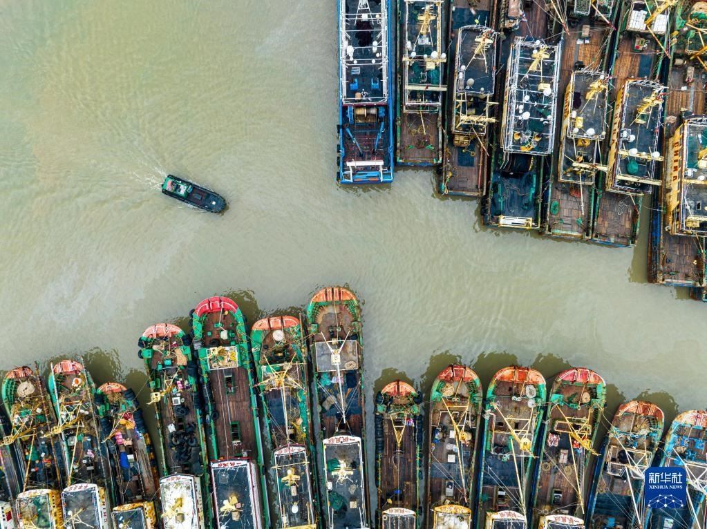 當(dāng)日,在浙江省溫嶺市石塘鎮(zhèn),漁船陸續(xù)進(jìn)港???,迎接即將到來的休漁期。新華社發(fā)(徐偉杰攝)