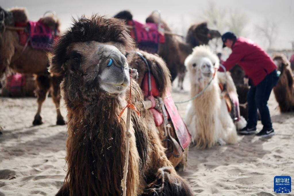騎著駱駝穿行大漠,遙想絲綢之路繁華盛景,是游客在甘肅敦煌的重要體驗項目。在距敦煌鳴沙山月牙泉景區(qū)最近的月牙泉村,村民們馴養(yǎng)著2000多峰駱駝,編有700多個駝號,這些特殊的“員工”每天輪流在鳴沙山月牙泉景區(qū)“上班”。