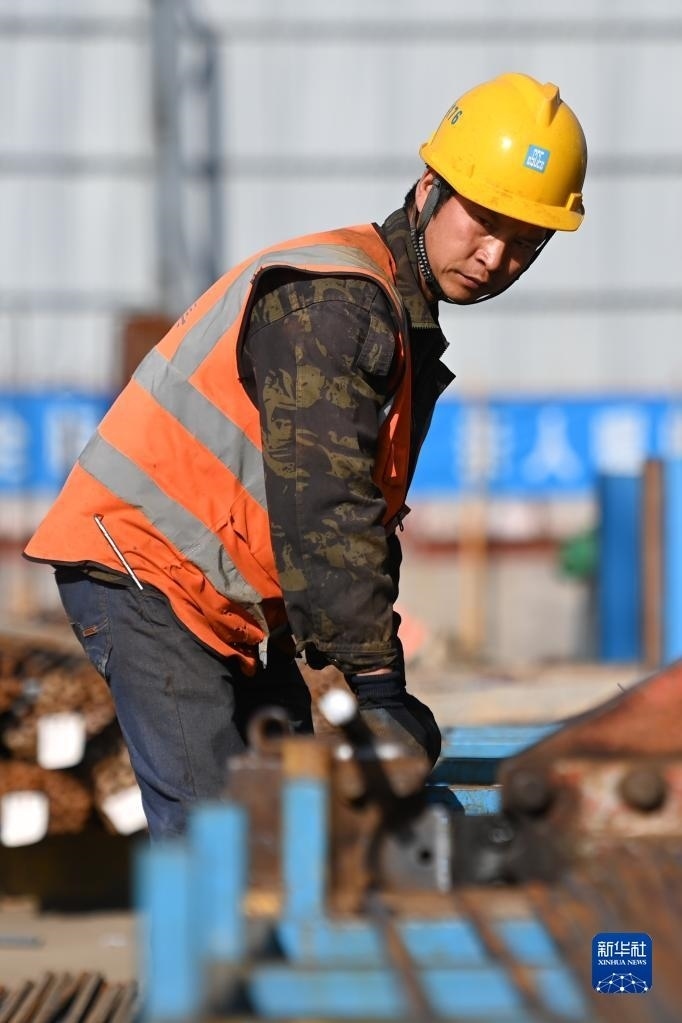 5月1日,工人在中建二局陜西分公司高鐵新城項(xiàng)目工地施工。
