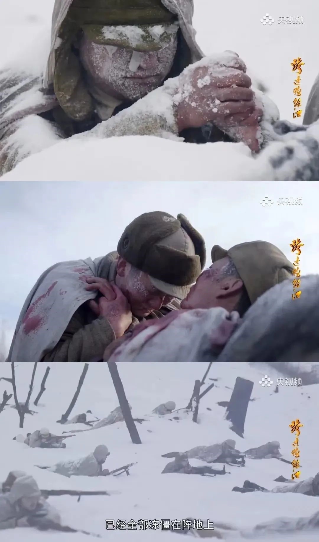 在朝鮮戰(zhàn)場(chǎng)上,志愿軍將士面對(duì)強(qiáng)大而兇狠的作戰(zhàn)對(duì)手,身處惡劣而殘酷的戰(zhàn)場(chǎng)環(huán)境,拋頭顱、灑熱血,譜寫了驚天地、泣鬼神的雄壯史詩(shī)?!拔液孟牒纫豢跓崴薄拔覑?ài)我的親人和祖國(guó)”……忍饑受凍絕不退縮,《跨過(guò)鴨綠江》中的每一位英雄,都令敵人膽寒,讓天地動(dòng)容!