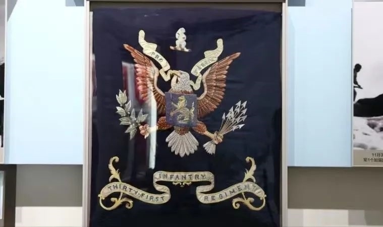 這是陳列在軍博的美軍“北極熊團(tuán)團(tuán)旗”?!犊邕^(guò)鴨綠江》真實(shí)還原了長(zhǎng)津湖戰(zhàn)役中,志愿軍全殲美北極熊團(tuán)并繳獲其團(tuán)旗的全過(guò)程。