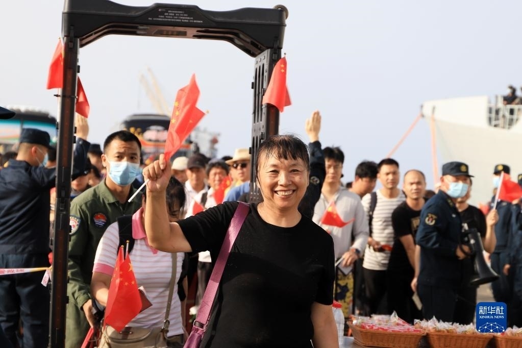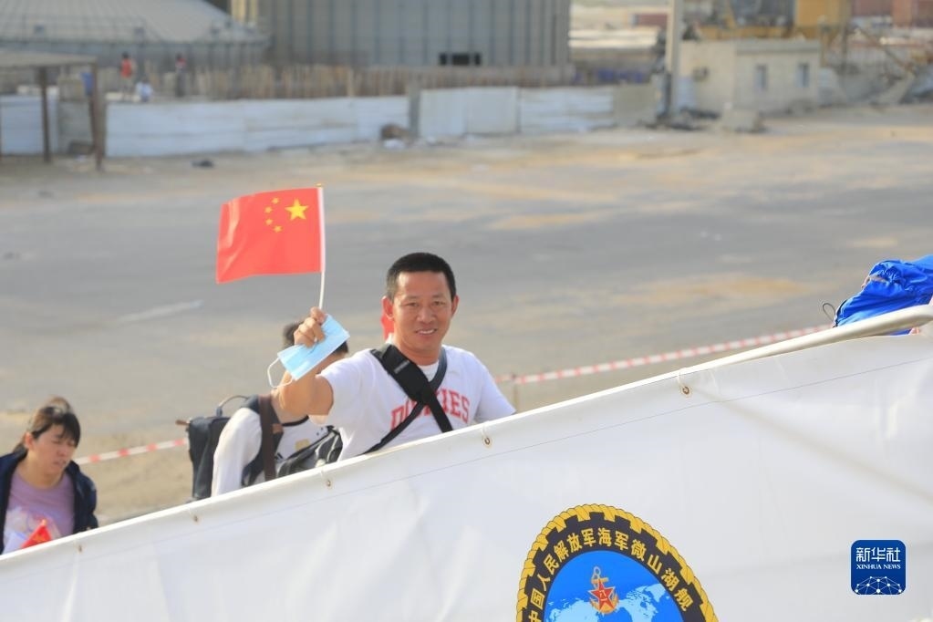 4月29日,從蘇丹撤離的中國(guó)公民乘坐中國(guó)海軍微山湖艦抵達(dá)沙特阿拉伯吉達(dá)港。新華社記者 王海洲 攝