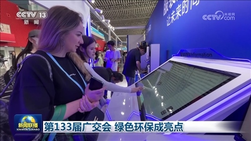 央視網(wǎng)消息(新聞聯(lián)播):第133屆廣交會(huì)三期正在進(jìn)行,綠色理念貫穿在布展、展品和技術(shù)等各個(gè)環(huán)節(jié)當(dāng)中。