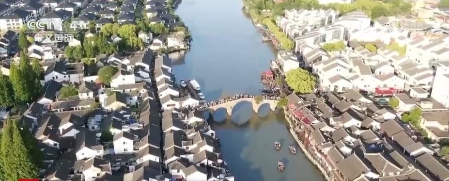 在上海,不少游客來到青浦區(qū)的古鎮(zhèn)朱家角,感受江南的水鄉(xiāng)風情。除了看園林、看建筑,還有一系列沉浸式游覽。游客可以坐上小船,也可以走進茶樓,感受水鄉(xiāng)風情,聽聽評彈,吃江南糕點,品上海味道。