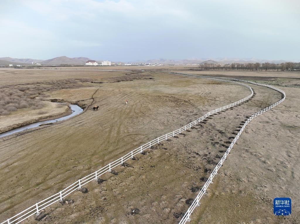 5月2日,河北省承德市豐寧滿族自治縣大灘鎮(zhèn)扎拉營村的護(hù)林員在海留圖國家濕地公園巡邏(無人機(jī)照片)。