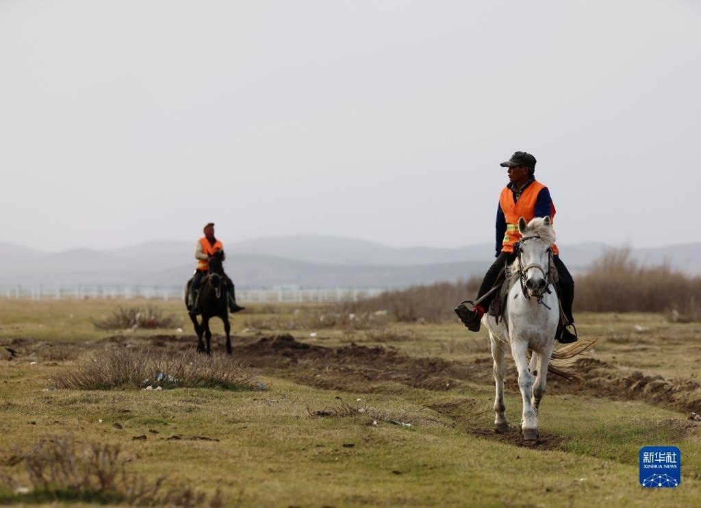 5月2日,河北省承德市豐寧滿族自治縣大灘鎮(zhèn)扎拉營村的護(hù)林員在海留圖國家濕地公園巡邏。