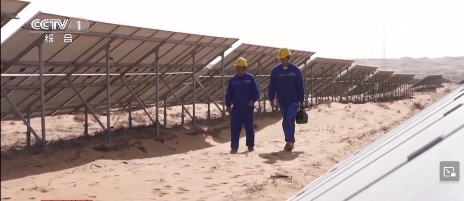 央視網(wǎng)消息:在寧夏中衛(wèi)市騰格里沙漠里,成千上萬塊藍(lán)色光伏板整齊排列,隨著太陽的運(yùn)轉(zhuǎn)逐日追光,每年可以發(fā)電17億度。這里的工作人員被稱為“追日人”?!拔逡弧奔倨?,他們依然堅(jiān)守在工作崗位上。