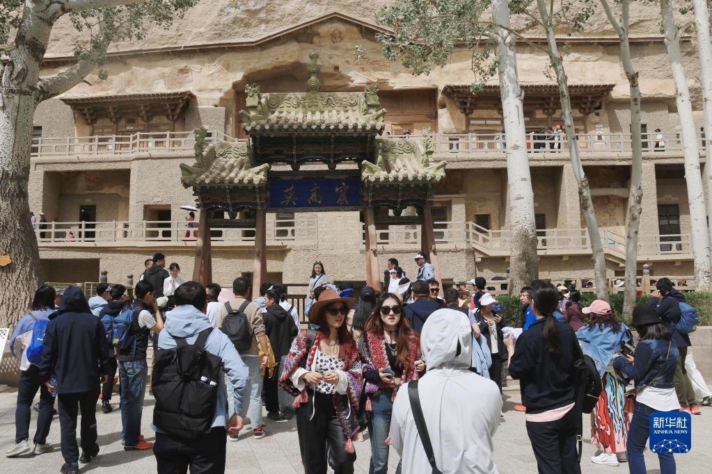 游客在莫高窟游覽(5月2日攝)。