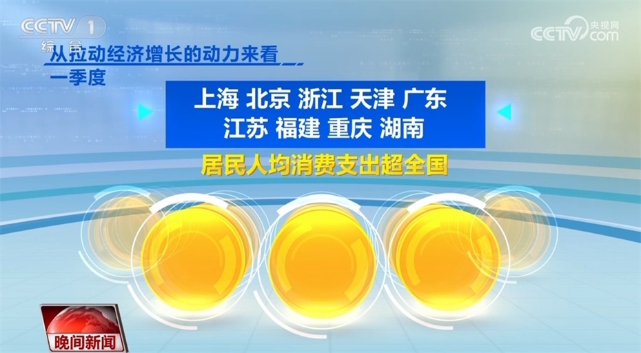 此外,各地經(jīng)濟(jì)發(fā)展也呈現(xiàn)回升向好態(tài)勢(shì)。目前,全國(guó)31個(gè)省(區(qū)、市),已經(jīng)全部公布一季度的經(jīng)濟(jì)運(yùn)行數(shù)據(jù)。從GDP增速來(lái)看,31個(gè)?。▍^(qū)、市)中有23個(gè)省份跑贏全國(guó)一季度GDP平均增速4.5%,從地區(qū)GDP總量看,有12個(gè)省份超1萬(wàn)億,廣東超過(guò)了3萬(wàn)億。從拉動(dòng)經(jīng)濟(jì)增長(zhǎng)的動(dòng)力來(lái)看,一季度,上海、北京、浙江、天津、廣東、江蘇、福建、重慶、湖南9省份,居民人均消費(fèi)支出超全國(guó)。