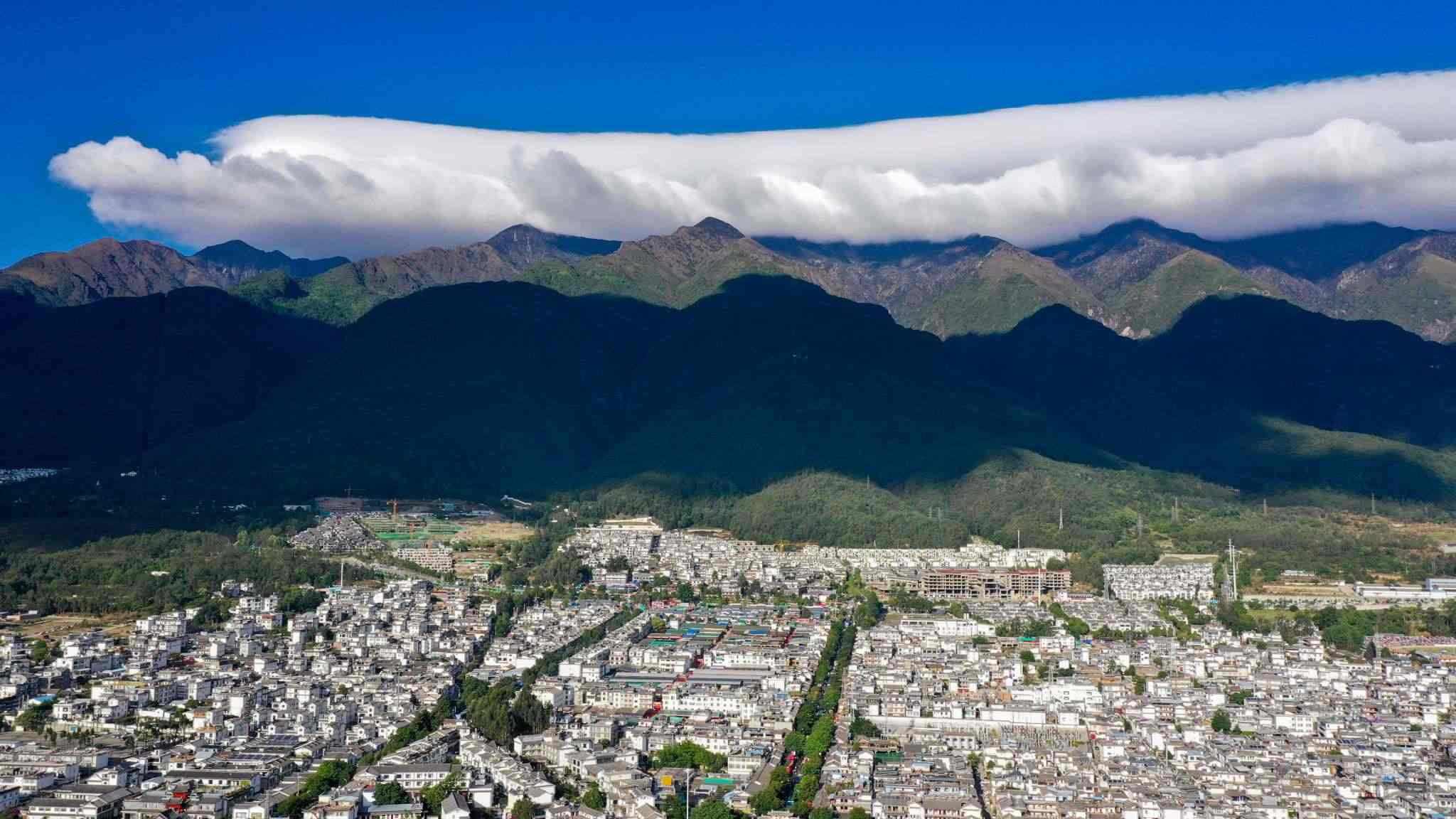云南大理:蒼山上空現(xiàn)“棉被云”