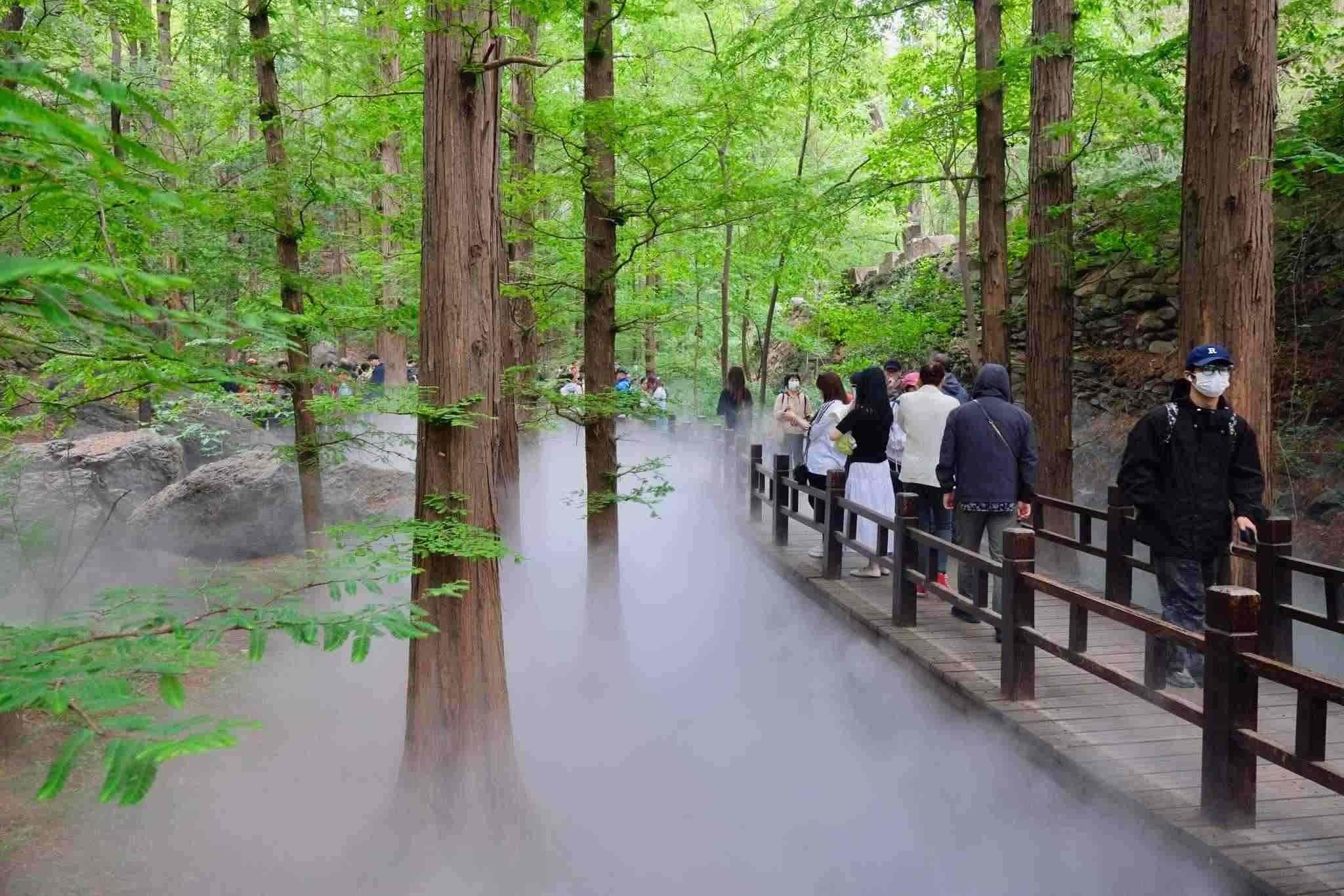 2023年5月6日,北京,立夏時(shí)節(jié),萬(wàn)物繁茂,國(guó)家植物園櫻桃溝景區(qū)“云霧繚繞”宛若“仙境”。視覺中國(guó)