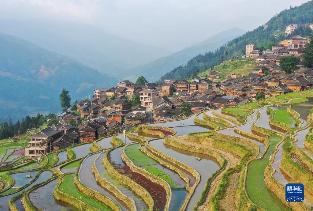 5月6日拍攝的貴州省從江縣加榜鄉(xiāng)加車(chē)村的梯田(無(wú)人機(jī)照片)。