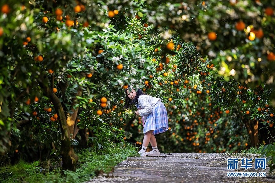 柑橘園里,濃郁的花香隨風(fēng)四溢,金燦燦的柑橘掩映在枝葉中,星星點(diǎn)點(diǎn)的小白花點(diǎn)綴其間,花香和果香交織沁人心脾。新華網(wǎng)發(fā)(余鴻 攝)