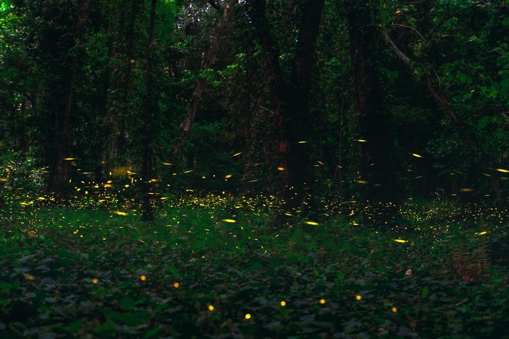 夜幕降臨 廣州華南植物園螢火蟲林間飛舞